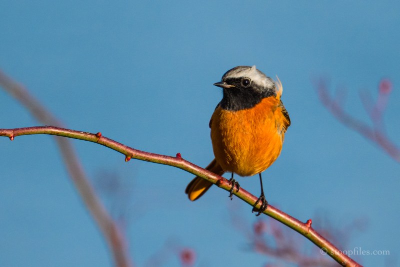 Niigata has two days when the sky is blue and the winds are gentle, then five when it sleets and gusts. As I get older, I wish to rest when I should be “making hay”, then I have an urge to go out when the wind will hurt my bones. Birds can be funny here too. I can go out and search and search to find crows and sparrows when it’s fine, but I have learned I can find something special when I should be playing guitar in a warm room with a cup of hot green tea. It is the brief outing in poor conditions when I seem to get unexpected thrills right in front of my face, such a Peregrine Falcon or Falcated Duck. I did, however venture out to find a Durian Redstart on a sunny afternoon the week before my winter vacation. To me it was a sign it was unlikely to snow as I usually see these superb little birds after the heavy snow season has come to an end, sometimes late February but I think mostly March. We did have some brief snow events so far this winter but my weather apps mostly describe days of “Freezing Rain”. I am still amazed to see people jogging in such conditions, when my mind is searching for cricket updates from home where the days are hot.